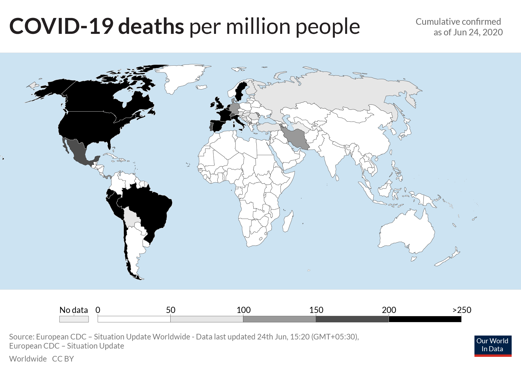 These are the countries that have been clobbered by COVID-19. This is a map of the dead, per capita. On a personal level, I’m sorry for each and every one. This didn’t have to happen. I’m all for abolishing whiteness, but white people are welcome to the human race. Together we mourn.