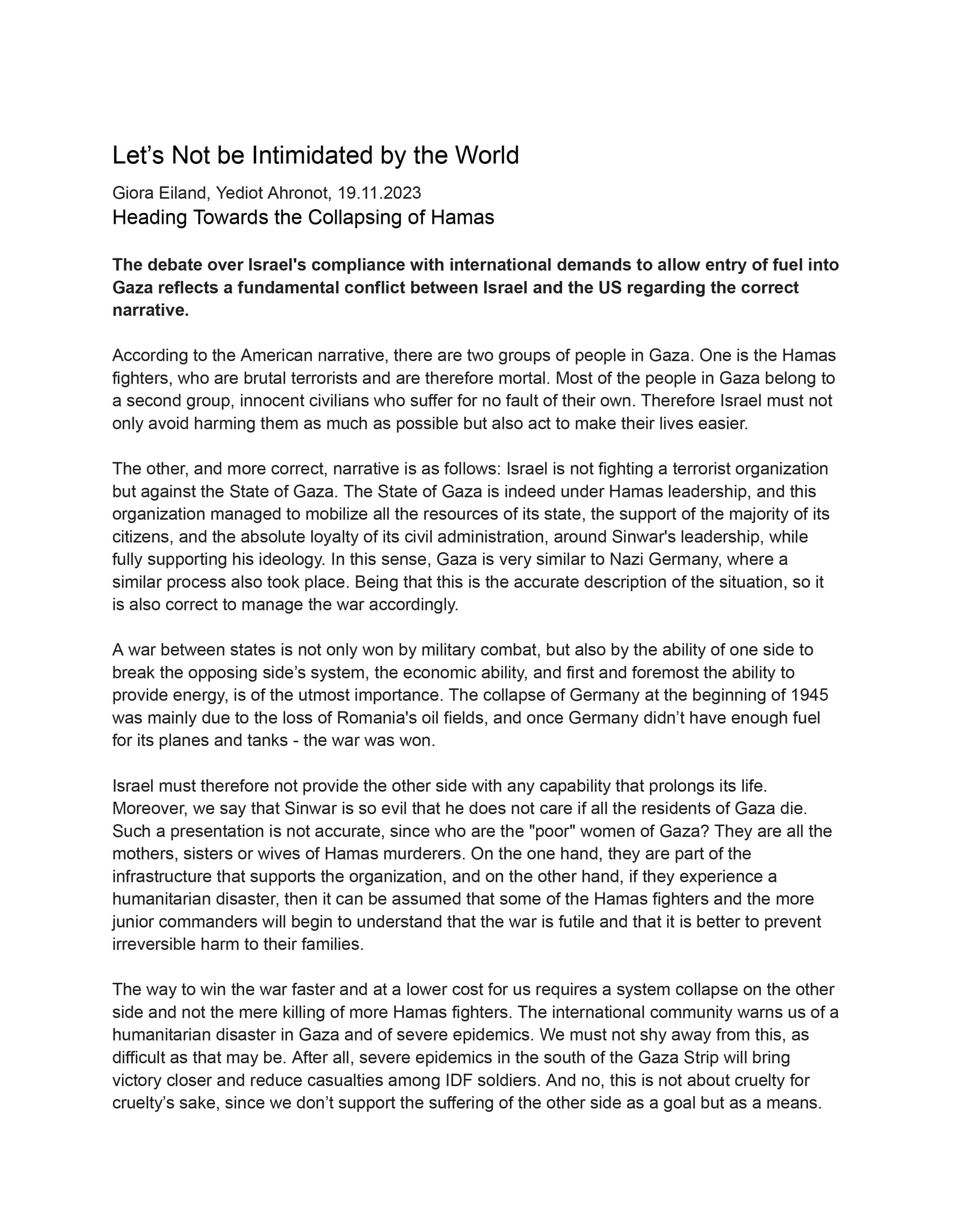 In 'Israeli' publication Yediot Ahronot, which again is less censored than the West, Eiland said (translated),