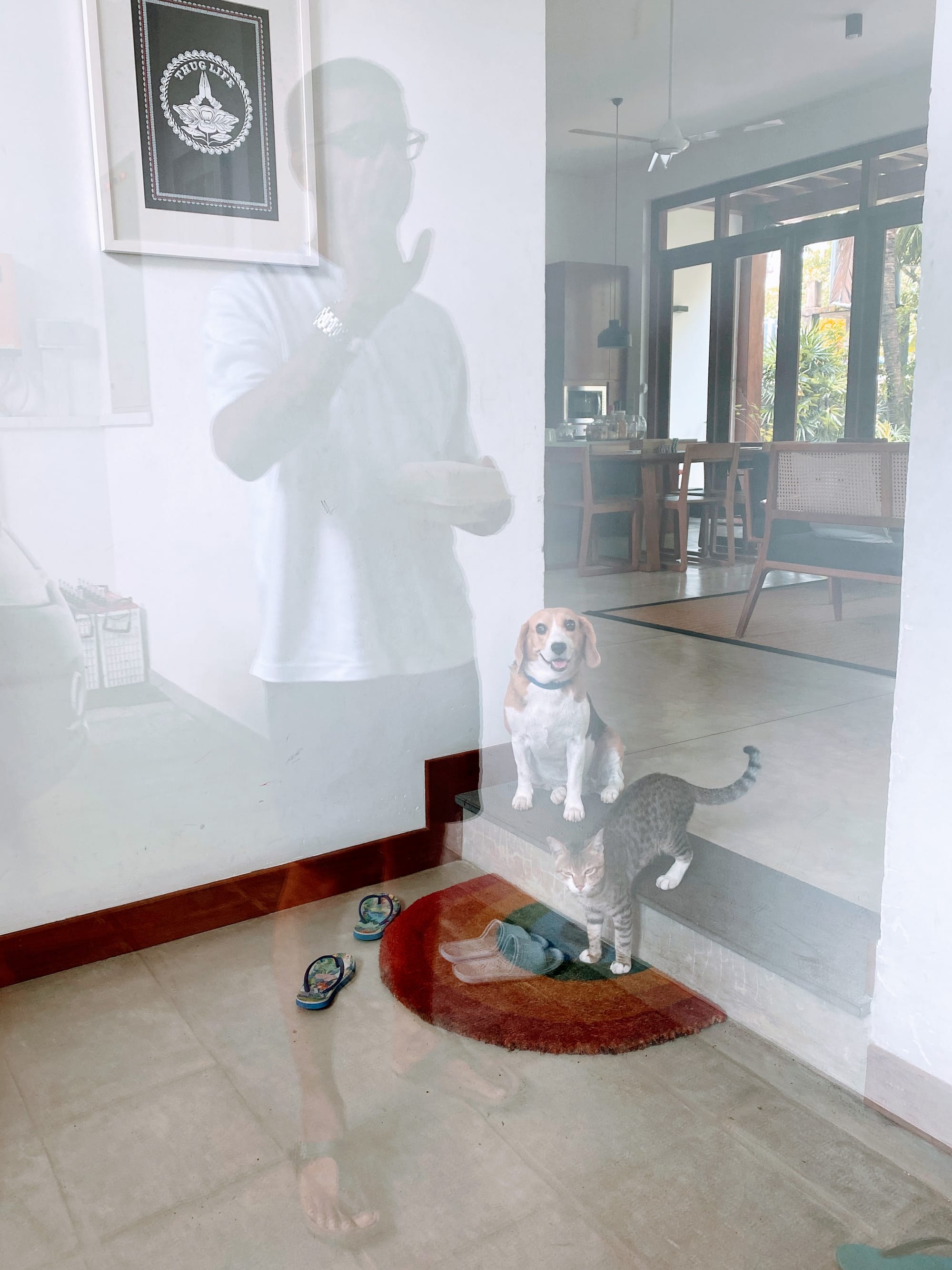 When I wake up the cat follows me downstairs and I let the dog in and they both get into some form of chaos while I'm trying to pray. If I'm lucky, no one's destroyed the tissue boxes or taken a sneaky shit. On a good day, they just chase each other around and under me while I'm trying to prostrate. One should be so blessed, really. It's a curse to take yourself seriously.