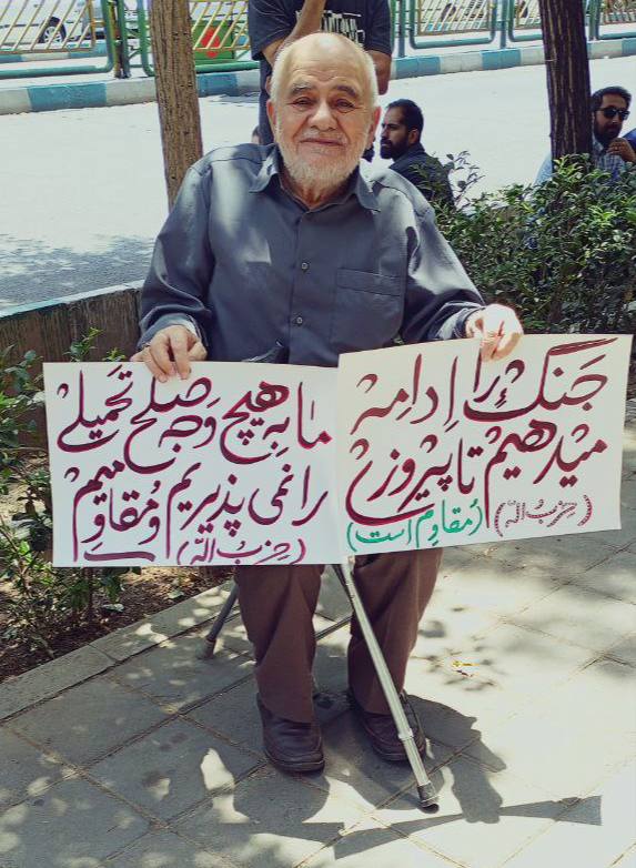 Gramp's sign says “We will continue the war until we win. We will not accept any imposed truce and we will be resistant.”