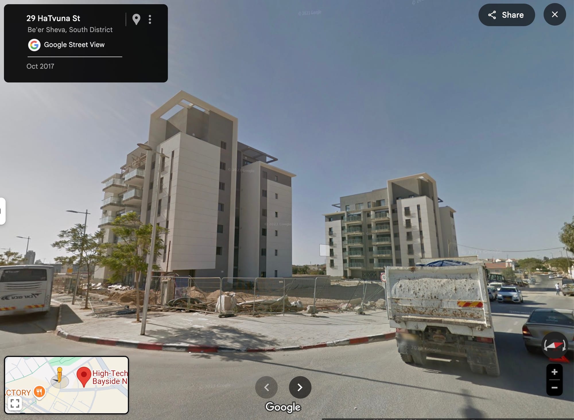 You can see that the Gav Yam Tech Park is military from Google Street View, precisely because you can't see it very well. Whenever I'm trying to geolocate these hits I find blank spots like this and I'm like, oh, that's it. As I've said about the White Empire, it hides in the blank spaces.