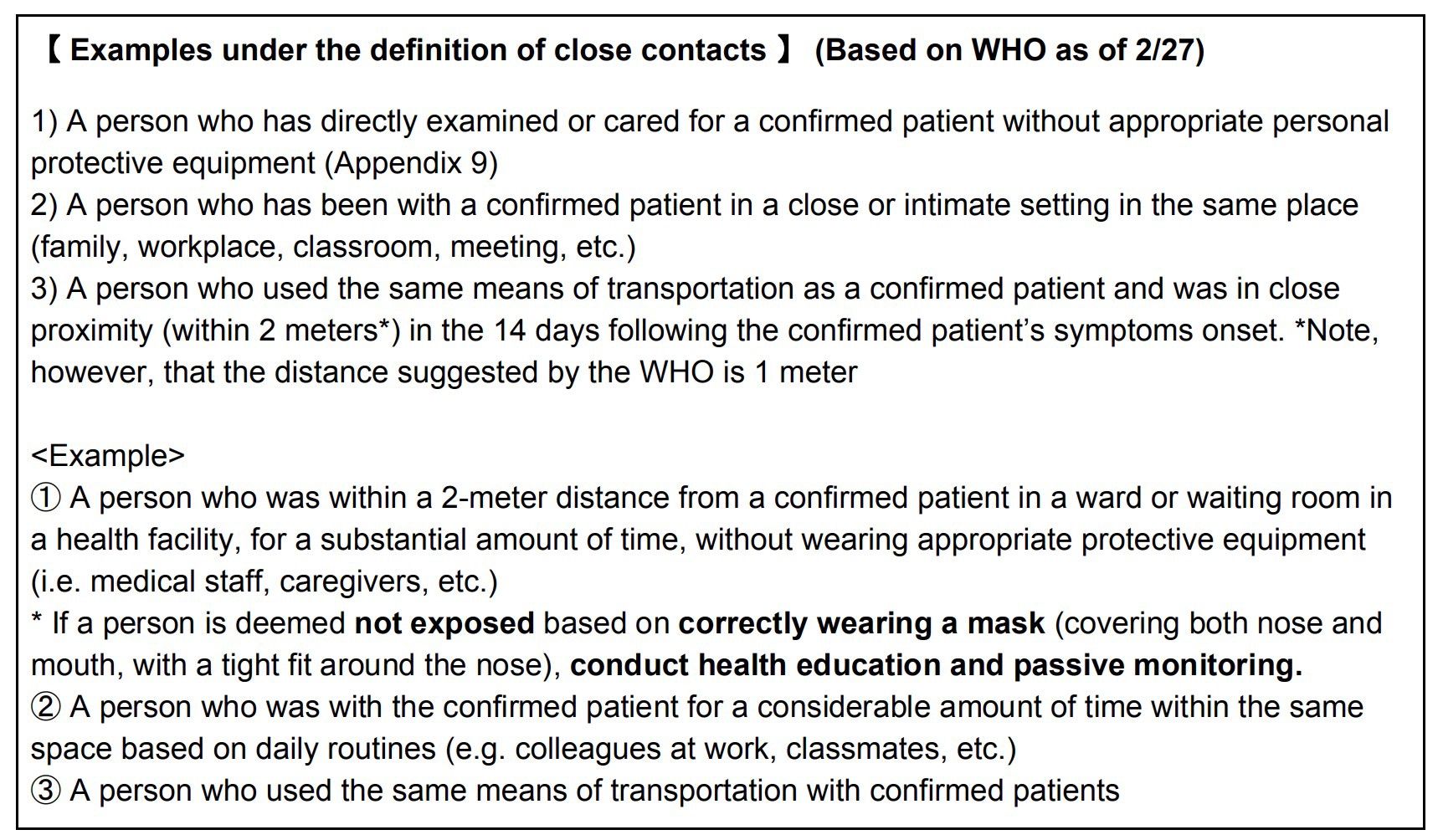 ○ DO: Wear masks to prevent respiratory infections, emphasize hand washing, obey cough etiquette, inform any history of overseas travel/contact with a patient when visiting healthcare facilities, etc.