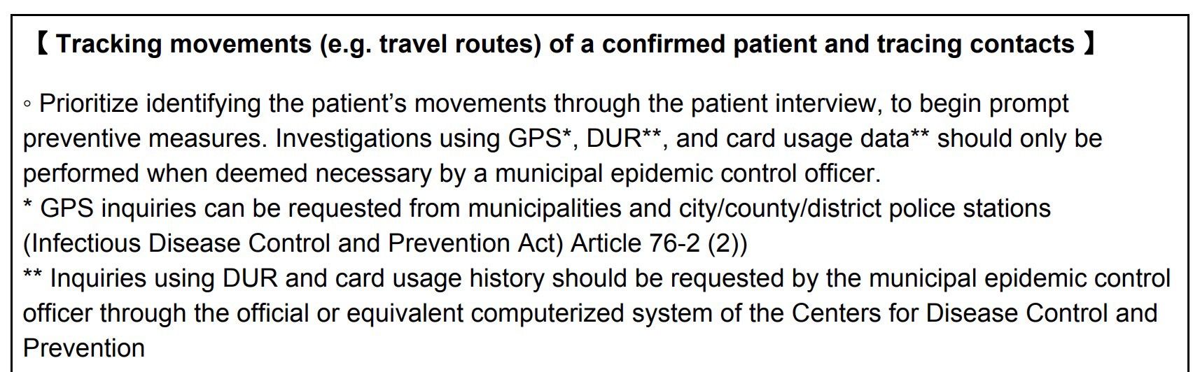 As you can see above, the Korean government does not immediately access your personal data. I was surprised by this, but it’s all done under existing laws. They rely on the patient interview first and have to get permission from the Epidemic Control Officer to do digital surveillance.