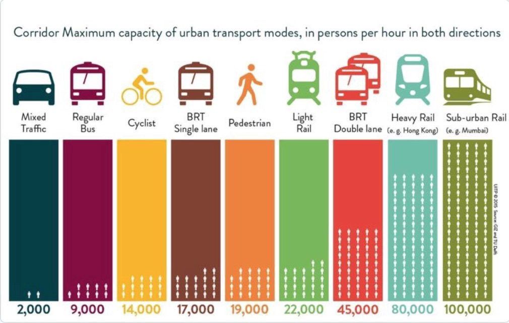 The movement on the GIF is illustrative. Buses are actually the lowest efficiency among public transit, I just include them cause it involves nearly zero major changes. Rail can move 80-100,000 people per corridor, per hour.