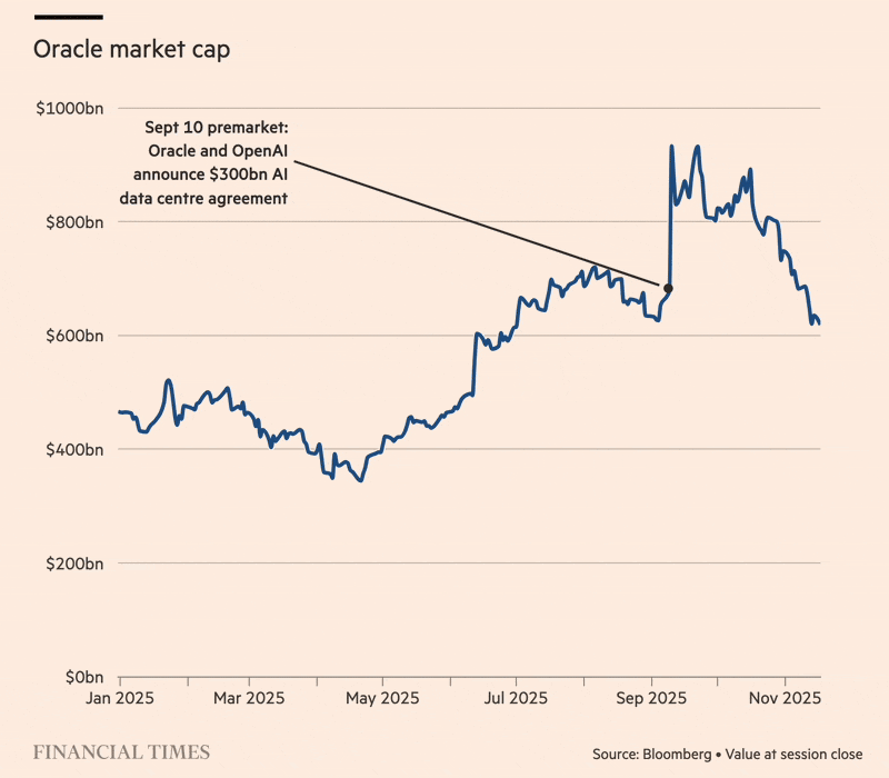 Recently, Oracle got an IOU for a future $300 billion from a company with negative cashflow and negative projections (OpenAI), but all the stock markets analysts and all the money men don't see anything wrong with this, because they're all fucking in on it. Oracle's stock jumped the GDP of a medium country immediately, and now came back below where they started, once the pump and dump was complete.