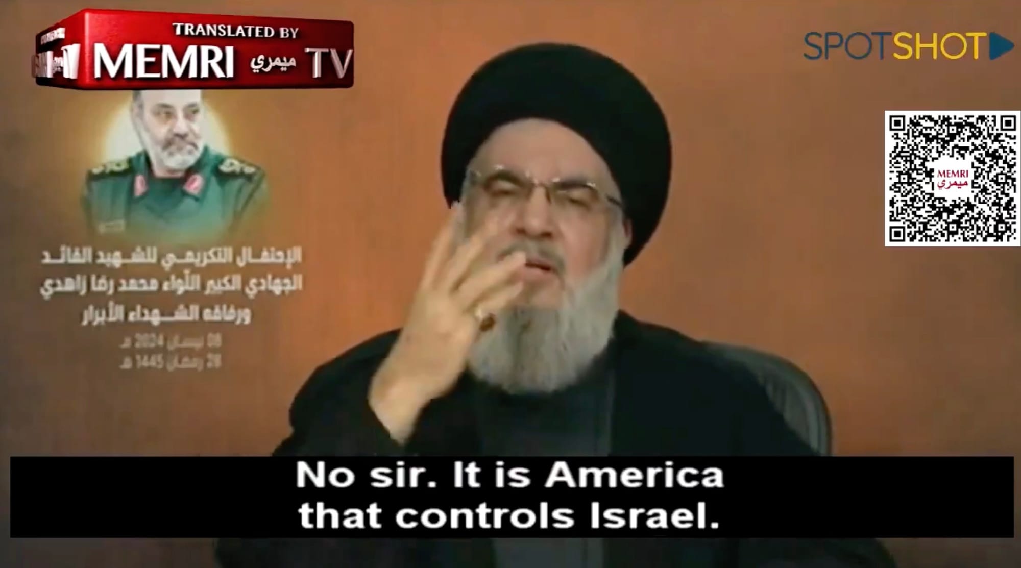 Hezbollah—the Resistance movement to the north in Lebanon—also has a remarkably lucid position on 'Israel' vs. the Jews. Their leader, Sayyed Hassan Nasrallah is one of the most astute political thinkers out there, period. While many Americans will say that 'Israel' controls America (and absolve themselves) Nasrallah knows that he who pays for the bullets calls the shots. As Aldan Marki says, “In a recent televised speech, [Nasrallah] unequivocally debunked the myth that Israel controls America. An opinion he has held for years.” As Sayyed Nasrallah repeated this month (April 2024):
