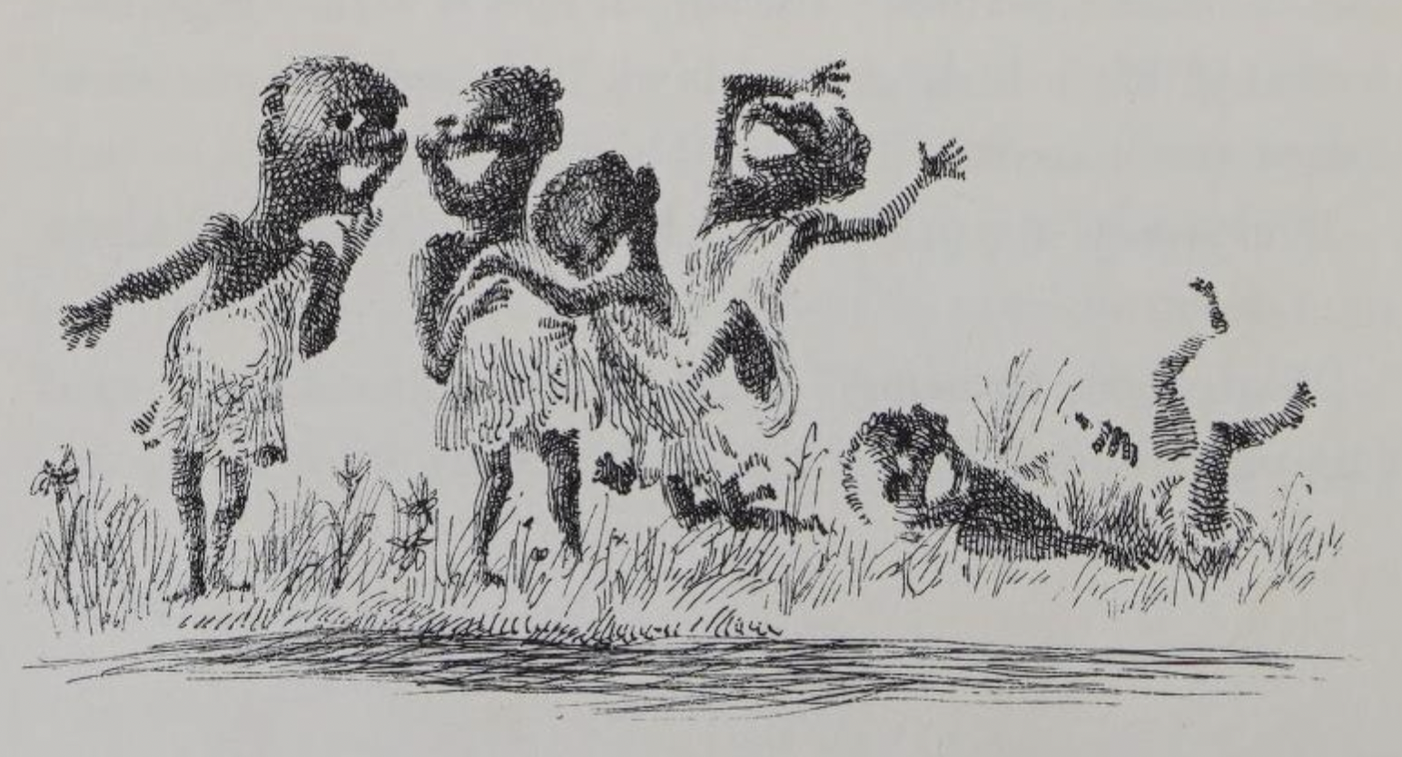Read this and remember that it was read in classrooms in the 1970s, not the 1870s. Black people, being shipped across the ocean.