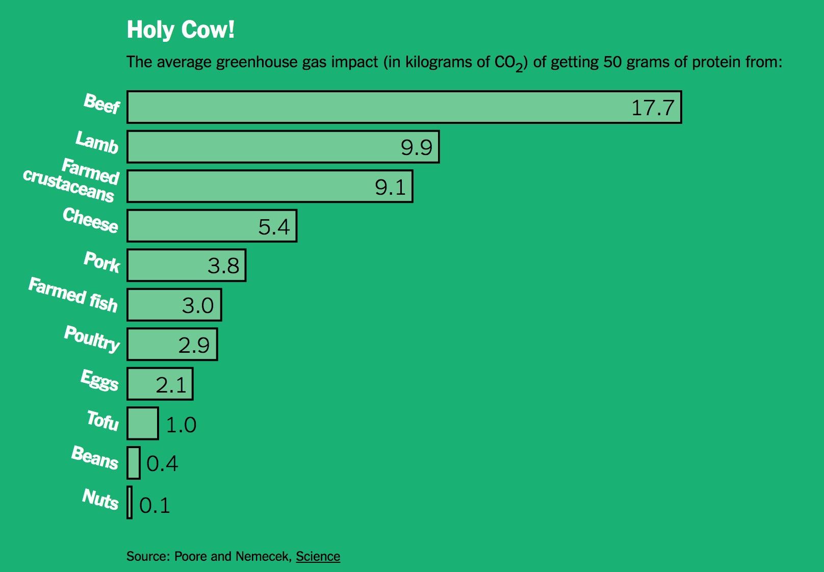 I stopped eating beef because the environmental impact is just too horrific. If cows were a country, their emissions would be third behind the US and China. The land and water use required for cattle is also horrific. Plus cows are nice. I liked steak and burgers, but I couldn’t in good conscience eat beef anymore.