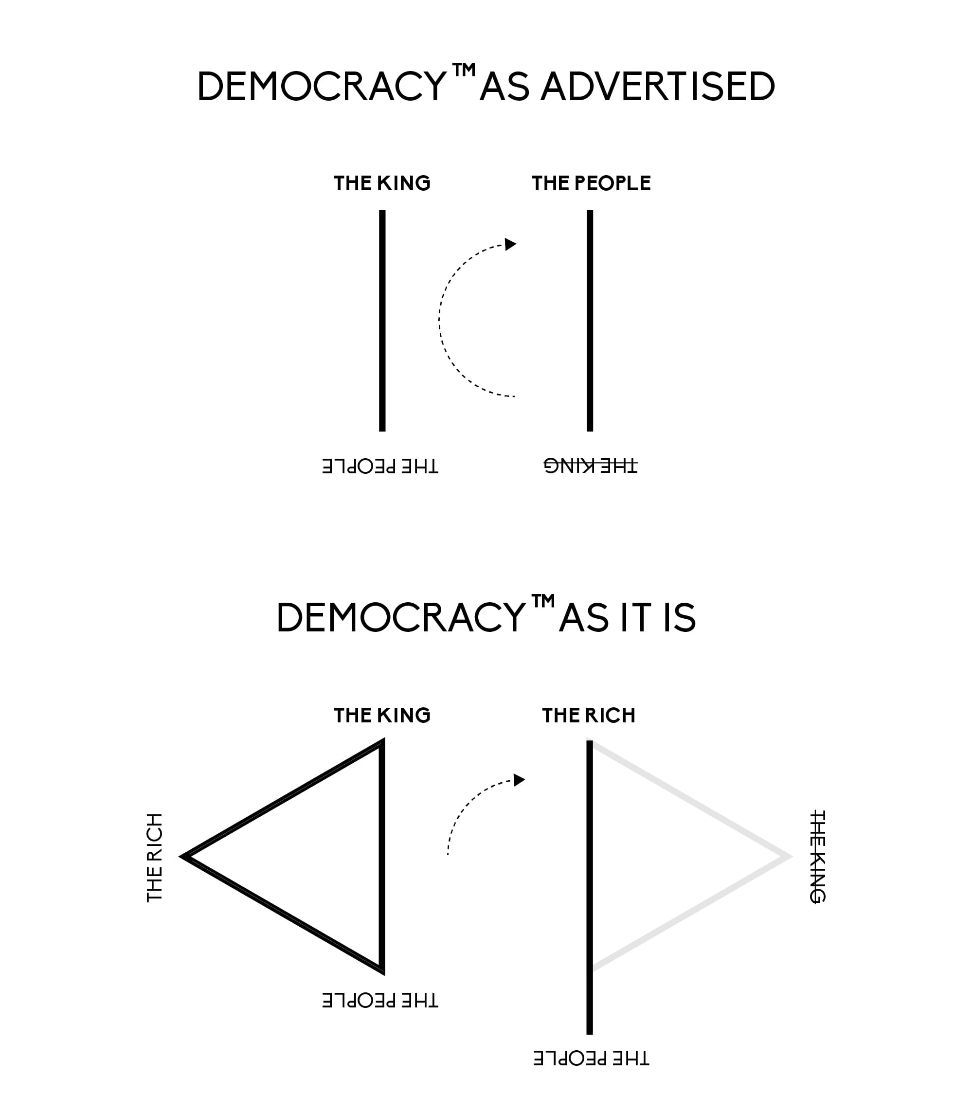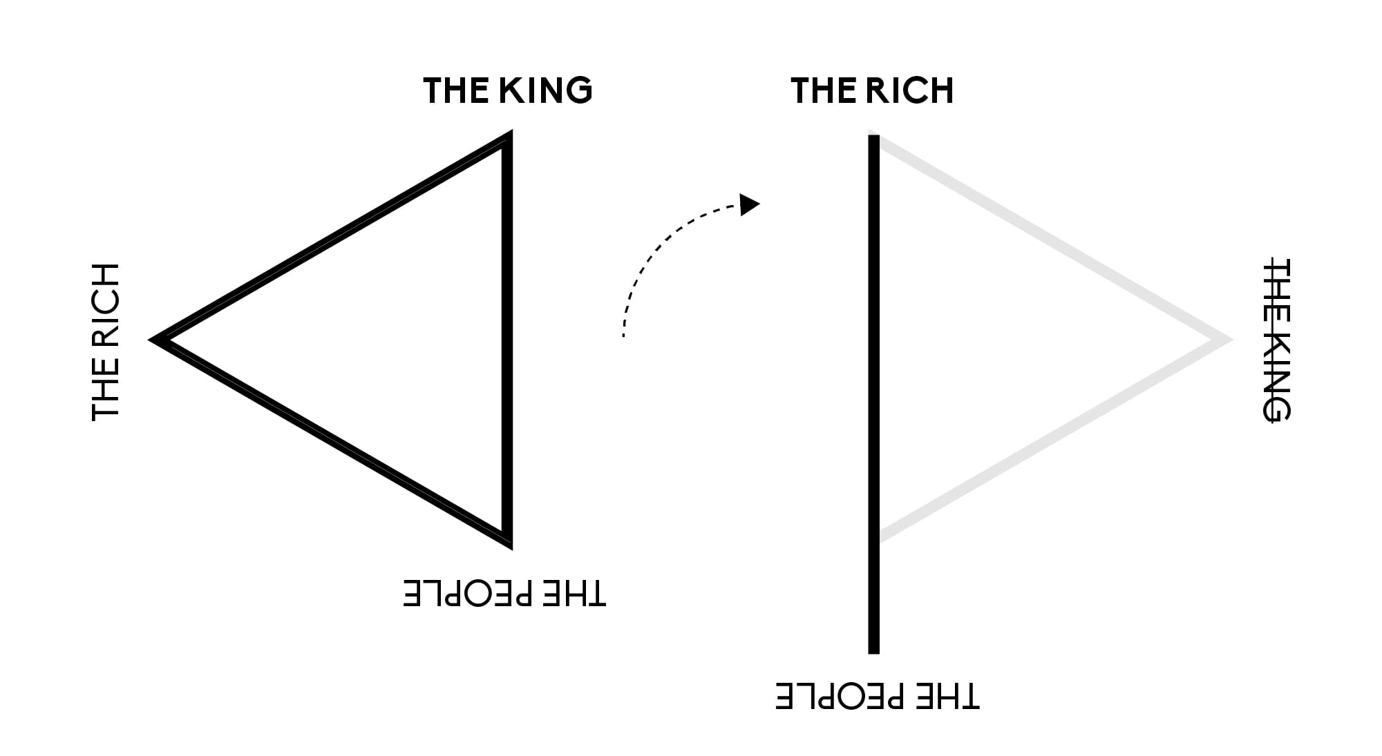 Growing up, I learned that people overthrew kings, and we had people power now. But growing into a people and having precious little power, I can see that something is wrong. Instead of one monarch oppressing us, we have even more oligarchs, completely unchecked now. Power was portrayed as a line, which we flipped, when in fact it's a triangle.