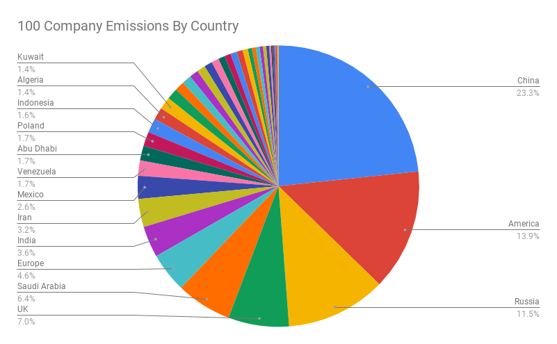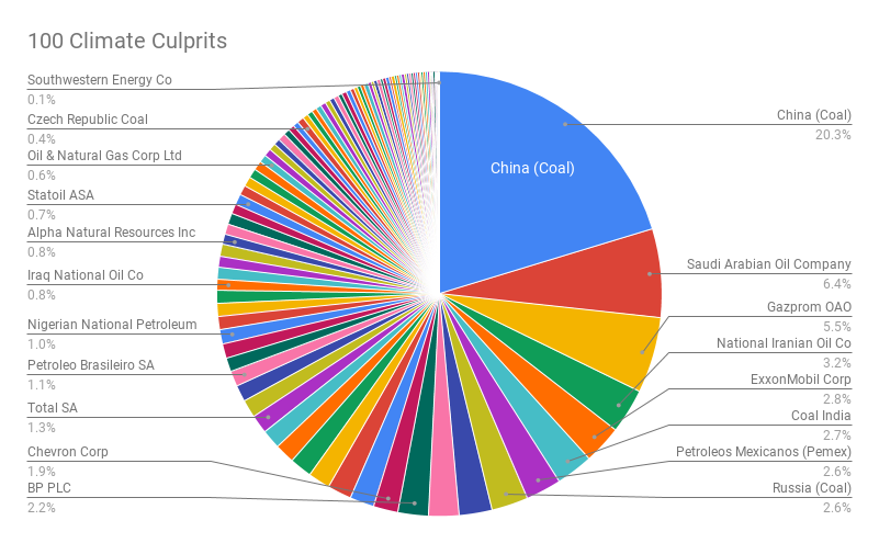 If you look closer at the 100 offending companies, they’re not typical private corporations. They are almost all state owned, or deeply connected to the state. Hence they are almost entirely political beasts. That is, if citizens can influence their countries, they can change our fate. This is of course problematic, especially when you look at the countries involved.