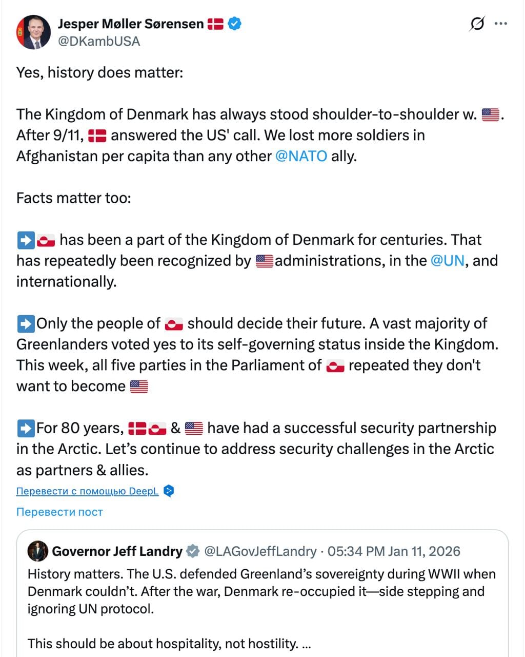 There is no honor among thieves and it's funny to see colonial Denmark cry foul about Denmark. Denmark's Ambassador to the USA said—with no sense of self-awareness—that the US should not invade Greenland because Denmark helped them invade Afghanistan.
