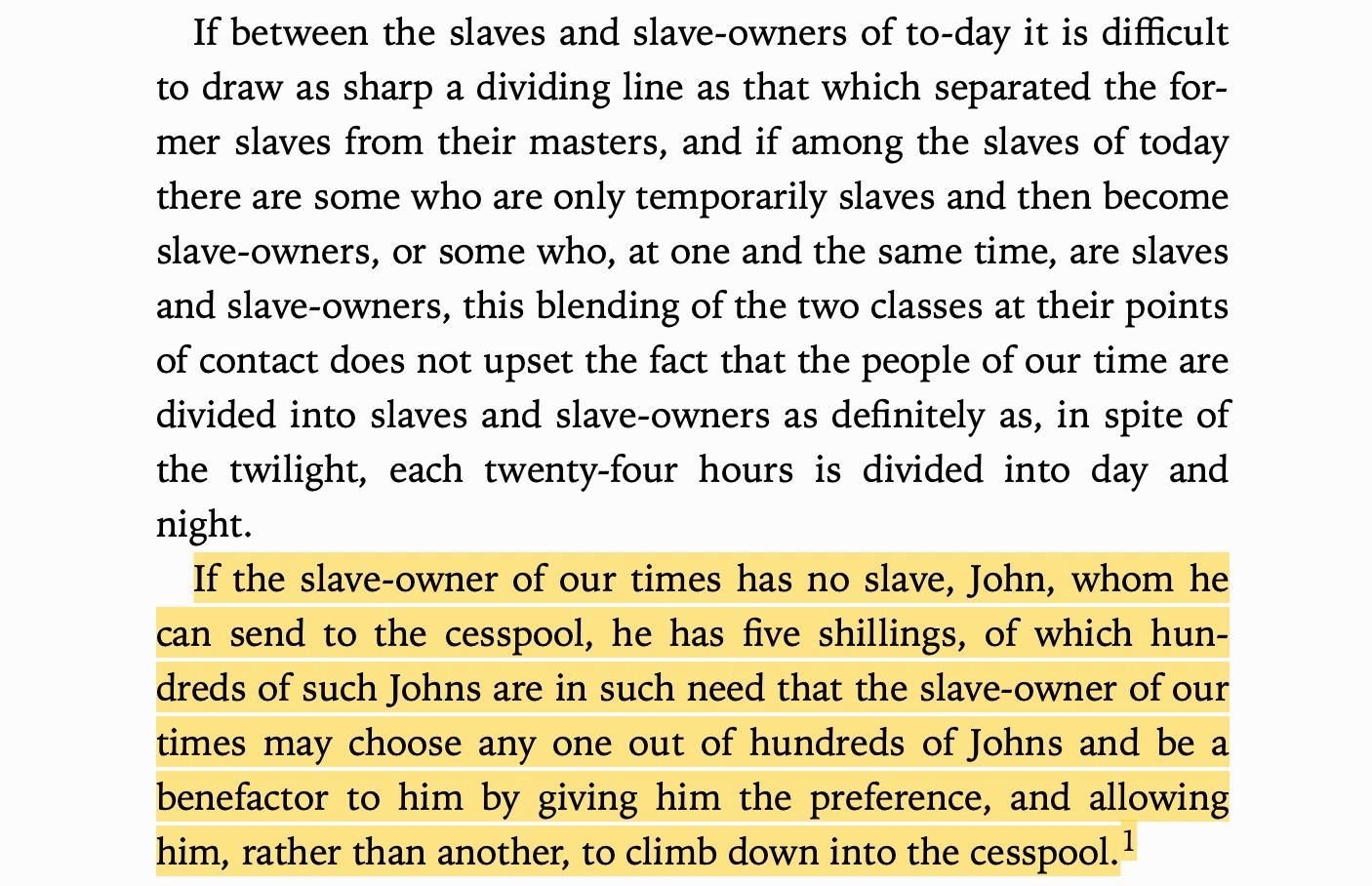 The title of Tolstoy's book is The Slavery Of Our Times, which he defines as wage slavery, working yourself to death in order to live. 70-years ahead of his time, he identifies structural violence (ie grinding poverty) as violence in itself. The stunning thing about his analysis is that it applies as much to a cesspool cleaner in 1900 as to an Uber driver in 2021.