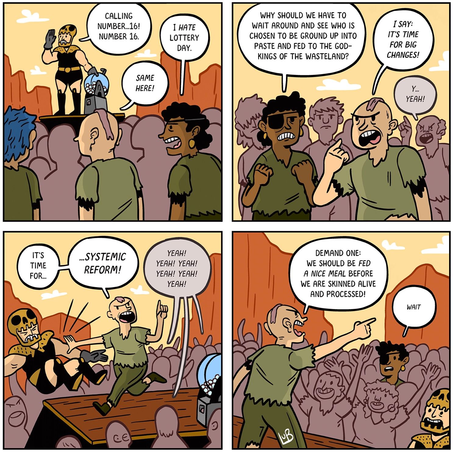 And so here we are today. Slowly stewing in liberal democracies, as climate change turns up the heat. We talk about making this legal or that illegal, but we might as well be talking about being basted in white wine or red. Every law is violence in itself (we'll get to that). Ever constitution that preserves state violence is a menu, and we're on it. We're being eaten alive.