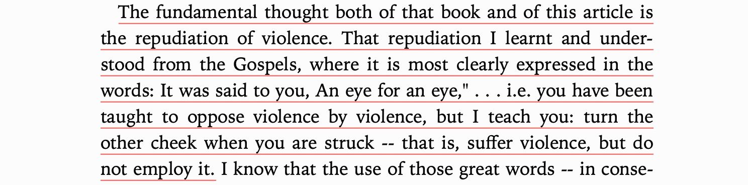 Throughout history we have been told alternatives to eye for an eye. We just don't listen. The most obvious example was Jesus Christ, telling people to turn the other cheek 2000 years ago. This teaching is actually the core of Tolstoy's book.