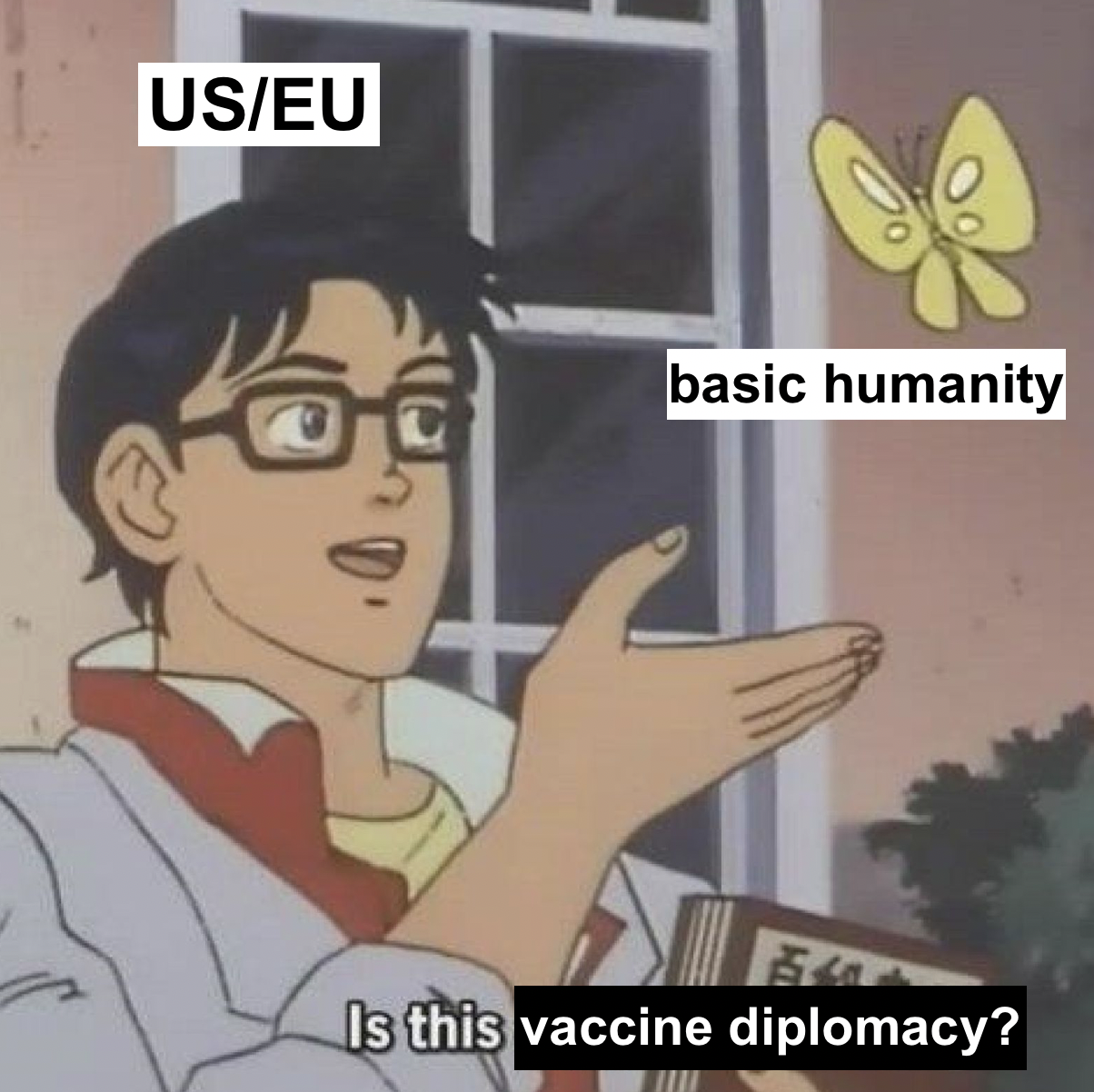 In western media, they've made up this term called 'vaccine diplomacy', and made it sound real scary. Russia and China are doing terrible things by giving people vaccines.