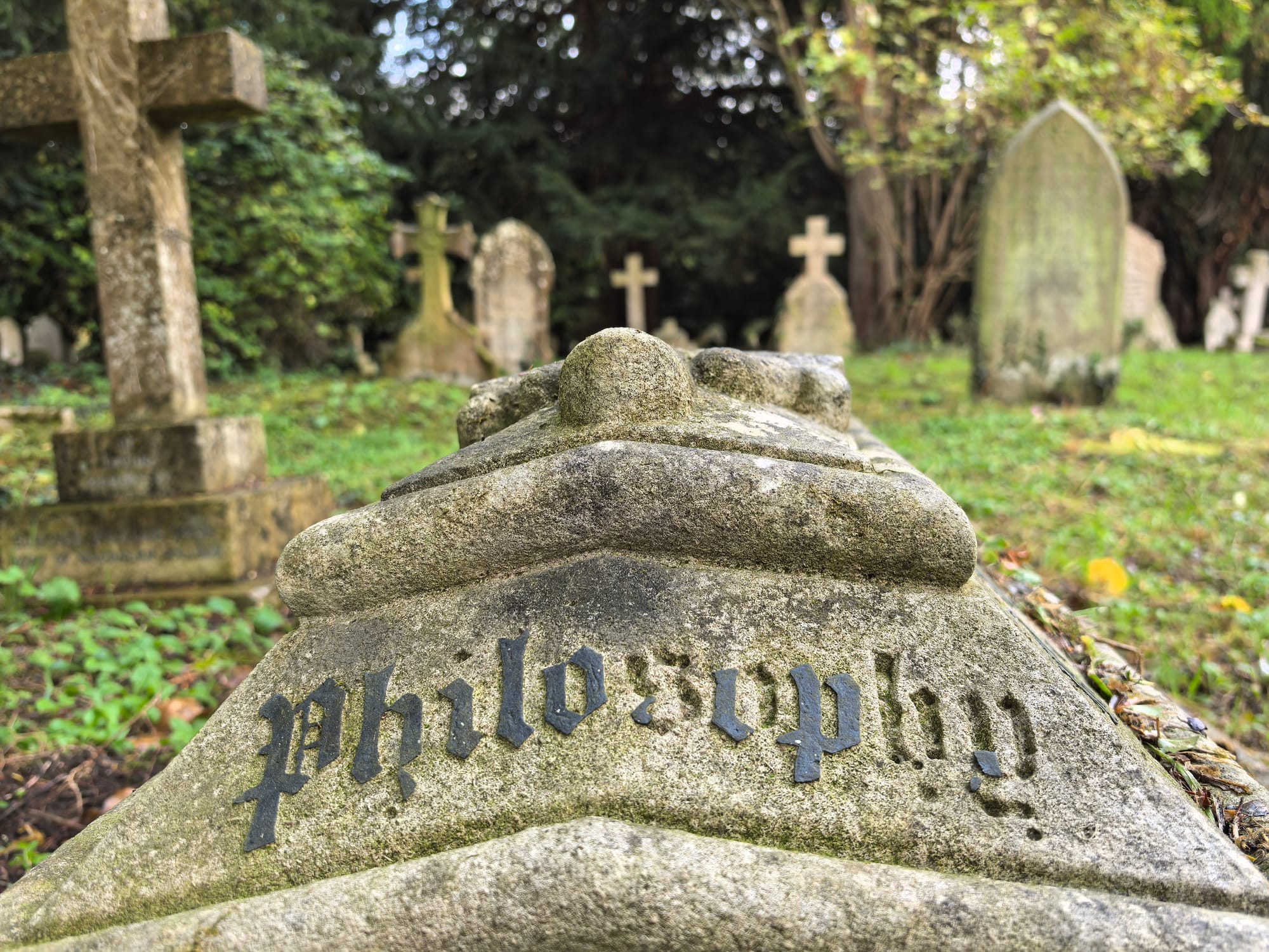 Or old philosophers's tombs, which look like the burial of philosophy itself. Everyone serious ends up being merely grave.