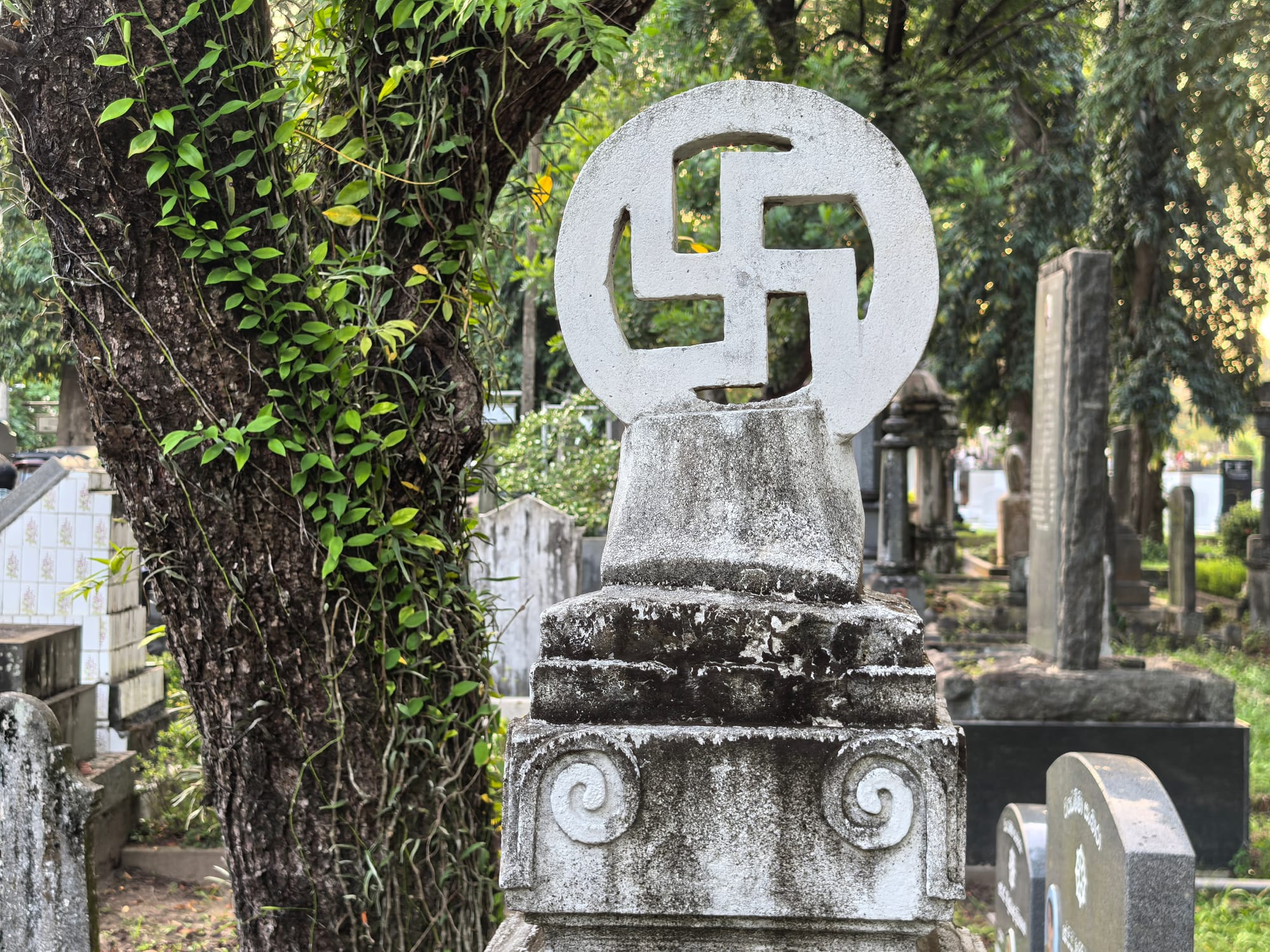 My friend is a novelist and he says there's a lot of characters in the graveyard. A lot of stories. He likes to wander around meeting the characters and calculating their innings. Me, I mainly look for swastikas, of which they are plenty.
