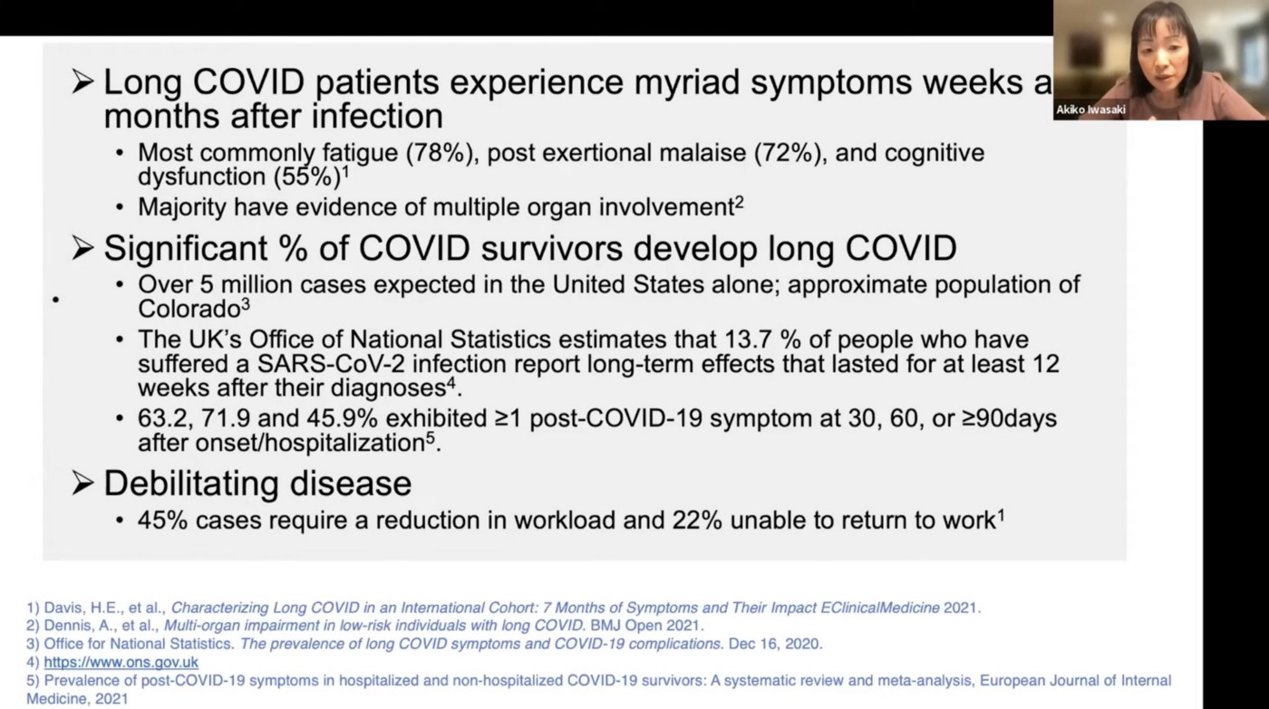 Death is not the only metric that matters. We need to talk about the lives lost to COVID, even if people survive. We need to talk about Long COVID. As Dr. Akiko Iwasaki says, “millions of people are currently suffering from devastating impact of long COVID.” This entire piece is based on a lecture she gave to the FNIH.