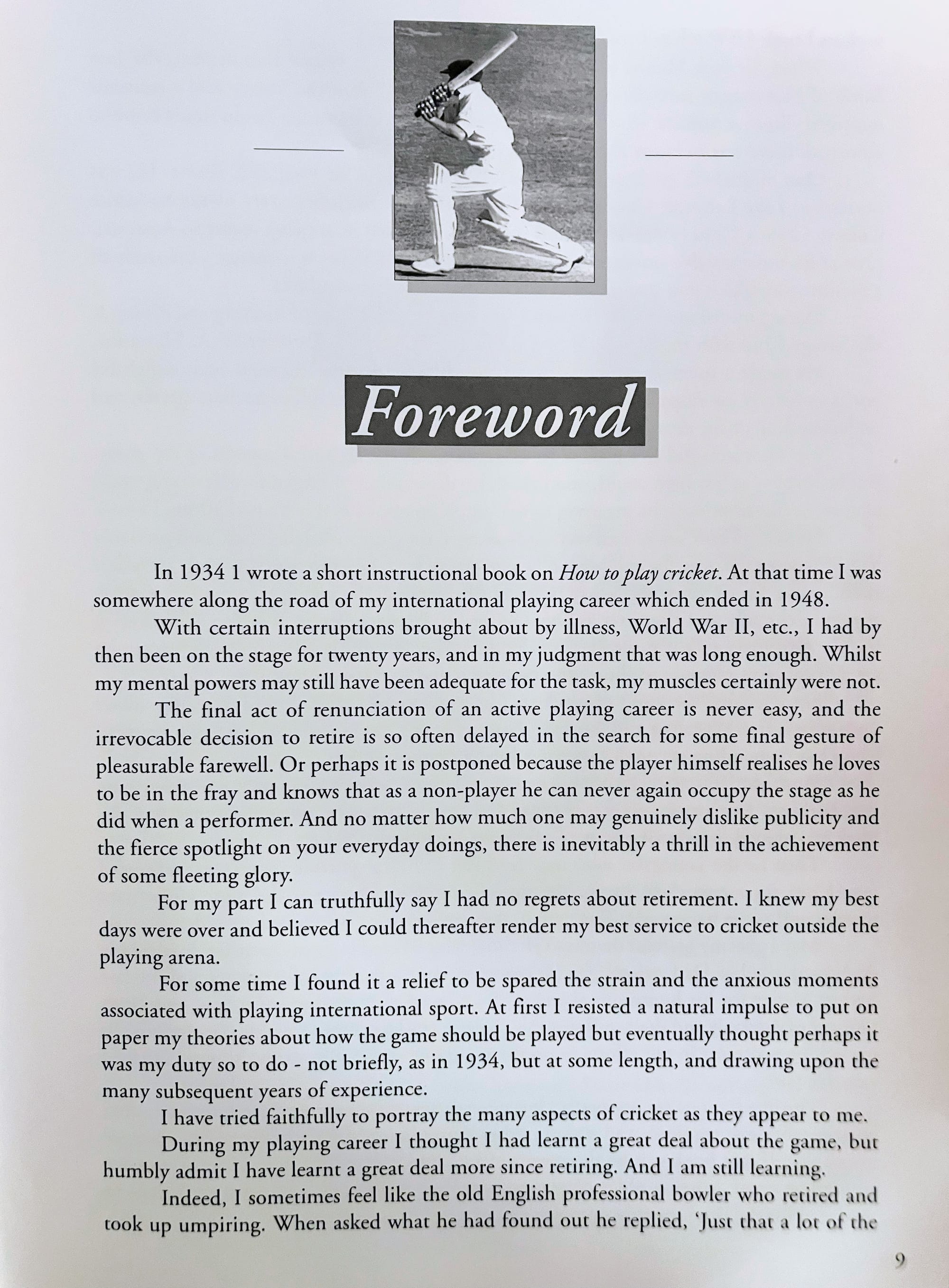 The boy has started cricket classes and the old man gave him a book of advice from an even older (no longer extant) cricketer, Don Bradman. The best in the game, and possibly the best in all games. The boy is too young for this but I've been reading it.