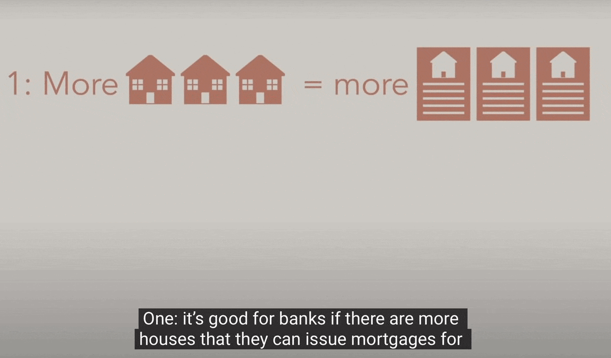 So the banks just issued more and more bad mortgages to anyone, developers kept building more and more houses that people don’t actually want and need, but which are happily bought up by speculators.