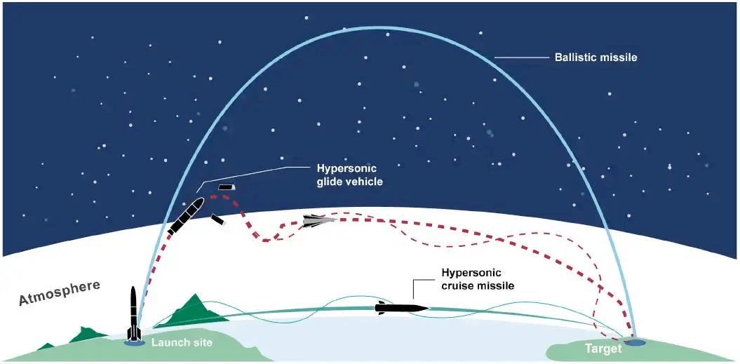 Previously, we discussed how smart missiles are the smartphones of dumb war. Now we'll discuss hypersonics, the smartest missiles. Hypersonic literally means a speed, travelling 6,000 to 12,000 KPH. Hypersonics also evade air defenses, they come in low and squirrelly. Hypersonics are like asteroids powered by supercomputers. A MIRV hypersonic can have six independently targeted re-entry vehicles. In cricket terms, this is like a fast bowler and a spin bowler who can bowl a full over in one toss. This is unstoppable. America is out for a (sitting) duck.