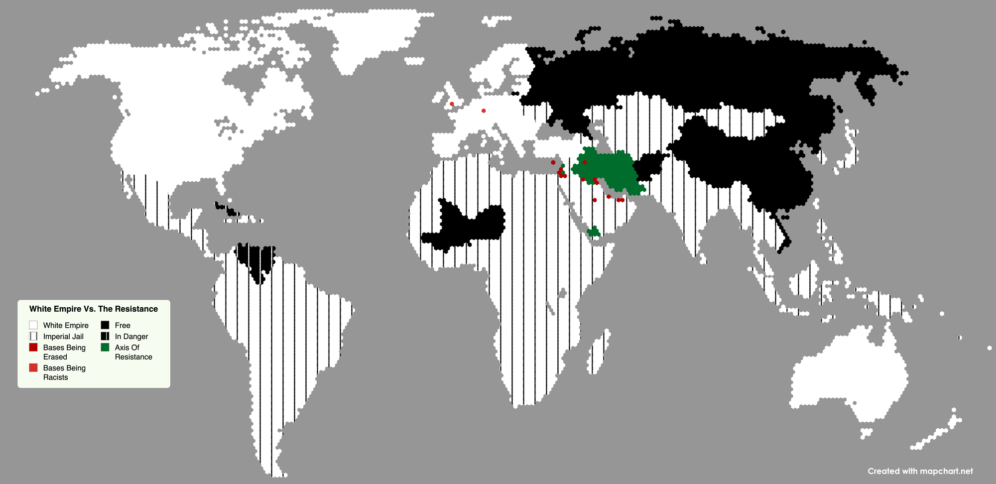 As you can see from all the black, the White Empire never won Asia in WWII and now they're losing it completely in WWIII. Russia is pushing back the nascent NATO base that was Ukraine and Iran is pushing back the Gulf Apostates that encircled them. I won't even get started on China because the Empire can't.
